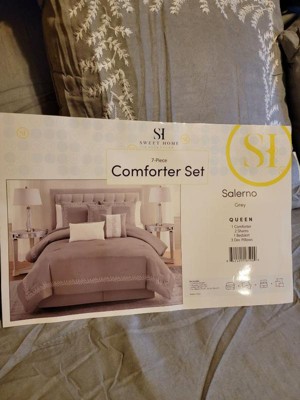 [This review was collected as part of a promotion.] Sweet Home 7 piece comforter set in Gray is beautiful and very well made! Queen size fits perfectly. Looks very elegant with the embroidered leaf pattern on the edges. The faux suede material is so soft. Three pillows are an added bonus.