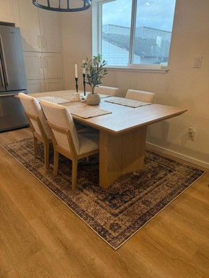 • Stain-Resistant Material: Our machine washable rugs are crafted from synthetic materials that are stain-resistant, lightweight, and easy to clean. The stain-resistant properties ensure that the rug maintains its vibrant colors and patterns, even after enduring the demands of everyday use. If your rug is located in an area that receives direct sunlight, regularly rotate your rug to maintain its appearance.