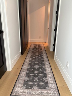 Product Name: Nuloom Moxie Spill Proof Treated Traditional Bordered Pet Friendly Premium Machine Washable Area Rug, Runner 2' 6" x 6', Charcoal