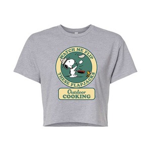 Women's - Peanuts - Outdoor Cooking Badge Cropped Graphic T-Shirt - 1 of 4