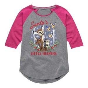 Disney Bambi - Christmas - Santa's Little Helpers - Toddler & Youth Girls Raglan Graphic T-Shirt - Add a touch of magic to your wardrobe with this graphic apparel featuring iconic Disney designs. Showcasing beloved characters and classic imagery, each piece combines nostalgic charm with modern style—perfect for Disney fans of all ages. Whether you're headed to the parks or just adding whimsy to your everyday look, these graphics bring the magic to life.