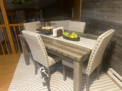 I’ve been searching for MONTHS for a dining set that checks all the boxes - and this one delivered beyond my expectations! As a busy mom of three, I was so tired of wobbly tables and uncomfortable chairs that made family dinners feel like torture sessions.  Assembly Nightmare? Not this time! The instructions were clear, and my husband and I had it put together in under 2 hours. No missing parts, no frustration - just a beautiful table ready for our family meals. Space Issues? We have a smaller dining area, but the rectangular design maximizes our space perfectly. We can comfortably fit 6 chairs without feeling cramped, and still have room to walk around. Comfort for Long Meals? The chairs have amazing cushioning! My kids can actually sit through a whole family dinner now without complaining about sore backs. The upholstery is durable too - we’ve already had a few spills and they wipe clean easily. Quality Concerns? I was worried about cheap particle board, but this is wood with a beautiful finish. The table has held up to countless homework sessions, craft projects, and family game nights without a single scratch.