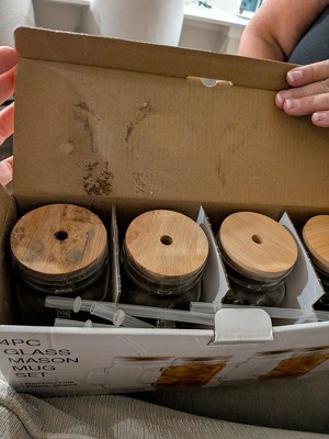 4PC Glass Jars with Bamboo Lids and Straw, 16oz Mason Jar Drinking Glasses – Reusable Tumbler Set for Cold Beverages