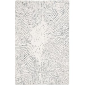 Elevate your living space with our exquisite 3' X 5' grey and ivory hand tufted area rug. Crafted from a blend of 40% wool, 40% viscose, and 20% cotton, this rug boasts a tactile comfort that speaks to the dedication of skilled artisans from India. The small rectangular shape and a subtle 1/2'' height make it a versatile addition to any room, fitting effortlessly into a variety of spaces.