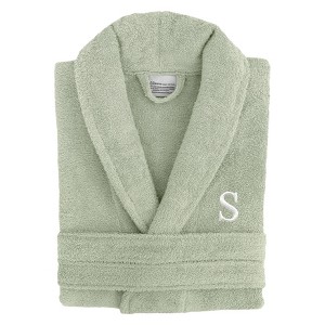 Linum Home Textiles 100% Turkish Cotton Adult Personalized Terry Bathrobe Green in White Bookman Font