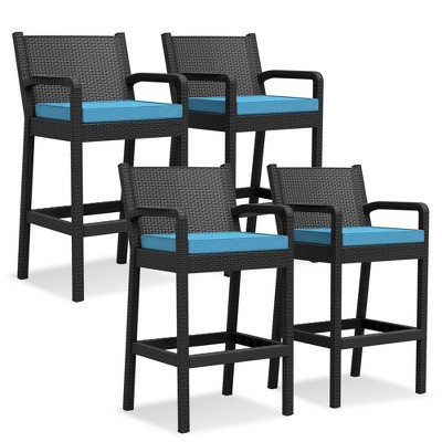 Crestlive Products 30'' Counter Height Set of 2 Swivel Bar Stools Cast Aluminum with Sunbrella Cushion & Curved Armrest Blue