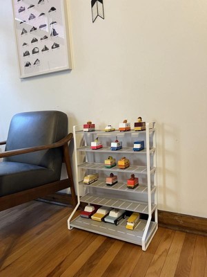 I searched online for something to control the vehicle chaos in our playroom that went with the aesthetic a little better than the plastic tote we were using and was glad to find this little shelf from a company I already knew and trusted! It was easy to assemble and my kids are thrilled with it. I would recommend it for a little bit older children since it is lightweight and will not hold up to rough play or attempted climbing.