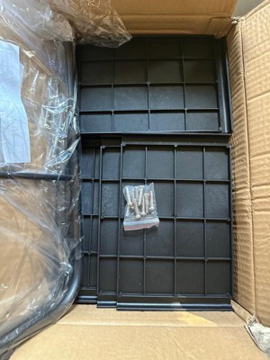 - Materials: Stainless Steel and Plastic; Includes: 8 Panels, 2 Side Poles, 4 Shelf Poles, and Hardware