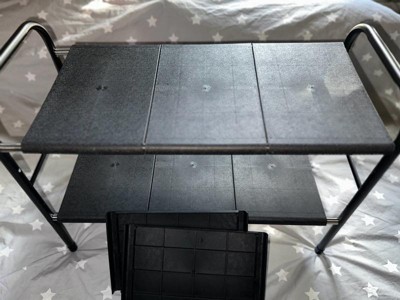 - Dimensions: (L) 20.5-27.5 x (W) 9.8 x (H) 16.5-inches; Panels: (L) 6.5 x (W) 10-inches; Product Weight: 4lbs; Weight Capacity: When Contracted: 16.5lbs Per Shelf; Expanded: 11lbs Per Shelf