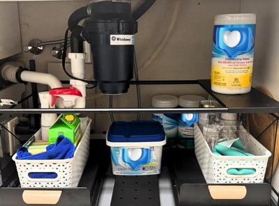 [This review was collected as part of a promotion.] I found under sink organizer to be vitiate I needed. It has reduced the clutter and made everything so much easier to find. The plastic is very sturdy and we didn’t have an issue putting it together.