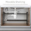 - With an adjustable length from 20.5in to 27.5in and 8 removable shelf panels, the under cabinet organizer fits under almost any sink and drainpipes aren't an issue