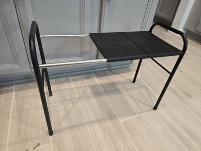 [This review was collected as part of a promotion.] The under sink storage is easily adjustable for width by adding or removing slats. There’s 4 options for shelf height. While this organizer is useful, the quality makes it something I wouldn’t pay much for. If the price was right, this would be an okay buy. Even using it for organizing pots and pans would be great, as it seems sturdy enough. It’s easy to put together, but be careful when tightening the screws. They were easy to over tighten and chipped the coating because of it.