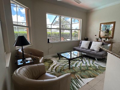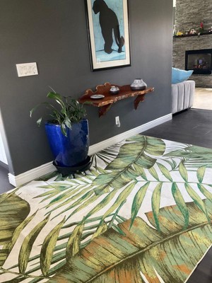 [This review was collected as part of a promotion.] This rugs looks amazing in small sitting area and inspired me to add white plantation shutters to complete the tropical ambiance!