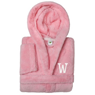 Personalized Linum Kids 100% Polyester SUPER PLUSH Double Brushed Hooded Bathrobe in White Script Font , Pink , Small