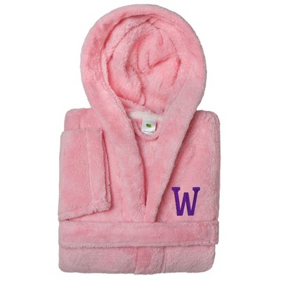 Personalized Linum Kids 100% Polyester SUPER PLUSH Double Brushed Hooded Bathrobe in White Script Font , Pink , Large