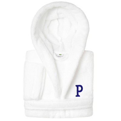 Personalized Linum Kids 100% Polyester SUPER PLUSH Double Brushed Hooded Bathrobe in Navy Script Font , White , Small