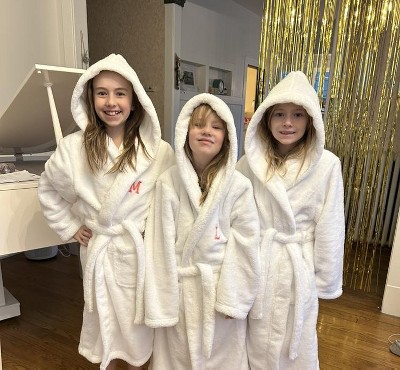 Personalized Linum Kids 100% Polyester SUPER PLUSH Double Brushed Hooded Bathrobe in Pink Bookman Font , White , Small
