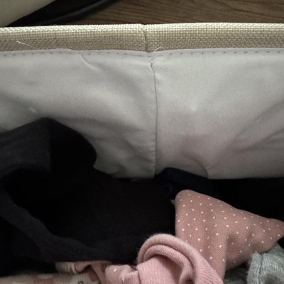 These are great storage bins. The inside is fabric and all the stitching is well done. I used them for my baby girls room and they are perfect to help me organize her stuff. The size is large and it’s perfect for bulky items like crib sheets. These shipped very fast and were well packaged. When you first open them they have lines on the material from being folded however I expect this to go away relitively quickly. I received an incentive to write this review.