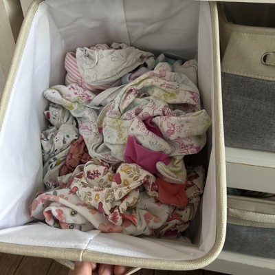 This collapsible storage Is a total game changer. We will most likely keep it the way you see it in the pictures, but it’s nice to have the option to take everything out and collapse them down if we want to store them or rotate what we have. The material is very thick and seems a very good quality. I get the impression this will last a very, very long time. the color schema is timeless and seems to go with anything I received an incentive to write this review.