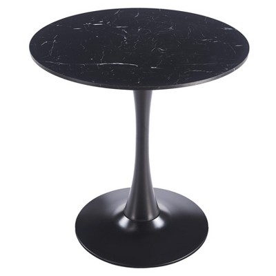 LeisureMod Bristol 35" Round Dining Table – Modern MDF Top Accent Café Table & Glossy Black Iron Pedestal Base for Kitchen and Small Spaces