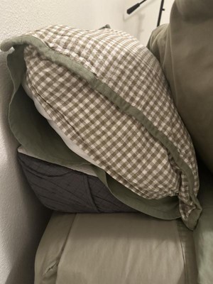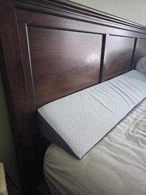 When I first got this pillow, I was under the assumption that it was used for actually propping your head up in bed, but after receiving it, I learned it's to eliminate the gap between your mattress and the wall/headboard. We don't have a gap so I guess we don't have a need for it. However, we tried using it under our pillows anyway and it wasn't comfortable at all. Additionally, this was supposed to be king size, which I assumed meant it was the width of my king size mattress. As you can see from my picture, it not the width of my king size mattress. The package came super vacuum-sealed and I had to let it puff up over a few days. As you can see in another photo, one end is crunched up and never straightened out. Additionally, the zipper has randomly opened in the center of the cover. In my opinion, this item isn't worth the money. Poor quality.