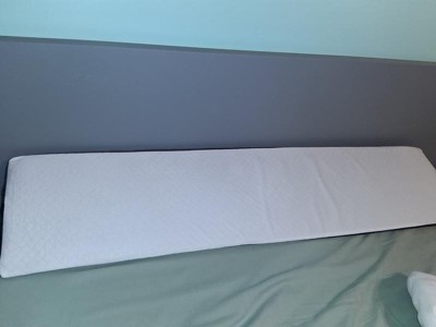 This is so great and came in handy especially for my son’s new bed! You can turn it different directions if you want to prop up against it or just close the gap between your mattress and the wall. It is soft material, lightweight and comfortable when reading or sleeping.