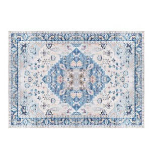 NewHome"6x9 FT Vintage Boho Area Rug, Non-Slip, Waterproof, Machine Washable for Living Room & Bedroom" Blue