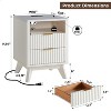 18" Modern Fluted Nightstand with Charging Station, Side Table with Faux Marble Top for Bedroom, Living Room, White