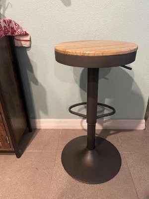 These stools are awesome-rock solid and well-made, with super easy assembly and all necessary tools included. The genuine wood seats feature a beautiful grain and a versatile neutral hue, and the hydraulic lift glides smoothly, fitting both standard counter heights and taller café-style tables. The metal bases boast a stylish matte finish, and the footrest bar is a nice detail. A quick heads-up: one seemed defective at first, but it was just a protective plastic cap stuck in the base's top hole that needed removing. Highly recommend these-excellent quality, handsome design, and great functionality!