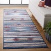 Step up your home decor with a touch of Bohemian flair! Introducing our 2'-6" X 8' runner area rug, expertly crafted using a power-loomed weave for a sleek 1/8" profile. Made from durable polyester pile, this rug is designed for both style and convenience. Featuring a vibrant blue and rust color scheme that brings a burst of life to your space, this piece merges practicality with artistic expression.