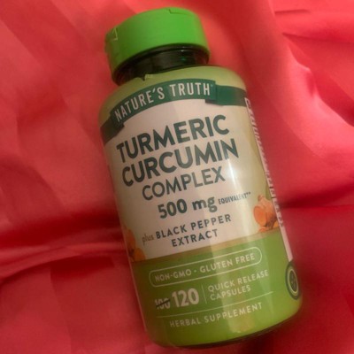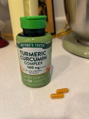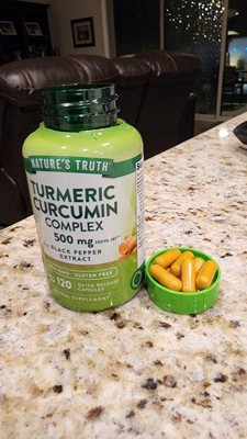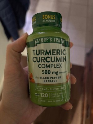 [This review was collected as part of a promotion.] Nature's Truth Tumeric Complex 120 CT is a bonus size with 20% more capsules, which is the equivalent of a four-month supply. The capsules are a regular size, and I found them easy to swallow. Nature's truth has two different turmeric products, I like both, but this one is made with black pepper extract for additional support.