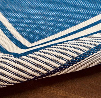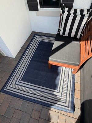 [This review was collected as part of a promotion.] So pleased with the arrival of the Nourison Horizon Indoor/ Outdoor Modern Rug in time for spring! The quality of the weave and the vibrance of the navy blue and cream coloring is outstanding. It complements my patio furniture so well. I am looking forward to many years of entertaining on my new patio with this beautiful Nourison product. This rug is so comfortable. Fell so awesome on this rug.
