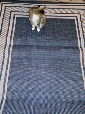 [This review was collected as part of a promotion.] Overall I like this rug a lot though there are a few issues with us using it. First, I like the color and design a lot, it looks really nice. Its also super light, so moving it around is really easy to do. The material isn't as soft as a regular rug, which makes sense since it is an indoor/outdoor rug. If you have cats like I do, however, this is the biggest issue; the material is similar enough to our cat scratchers that the cats keep taking their claws to it. I will probably use it as an outdoor rug once the weather is warmer to keep the cats from damaging it but if you don't have that issue, this would make a nice decorative addition to your home.