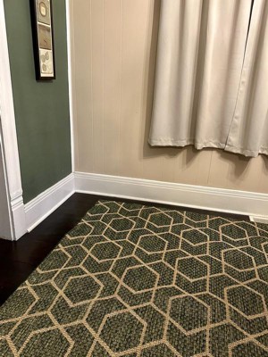 [This review was collected as part of a promotion.] I recently got this Nourison rug for a room in my home and I am really happy with how it looks. The green color matches my wall paint almost perfectly, and I love the hexagonal pattern. It gives the room a very modern and clean vibe. Since it is an indoor/outdoor rug, it feels very durable and like it will hold up well over time. It is a flatweave style, so it is not super soft, but it still feels nice and lays down flat. None of the corners folded up at all or had a hard time laying flat as the rug is pretty heavy and sturdy for its size. It looks great against my dark wood floors and white baseboards. I would definitely recommend this if you are looking for something that is both stylish and built to last. I’m sure all of their other rugs in other colors and styles are just as good!