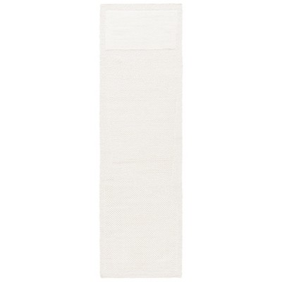 Embrace the charm of simplicity and sustainable craftsmanship with this serene, modern ivory runner rug � a serene statement piece for those who appreciate subtlety in design.