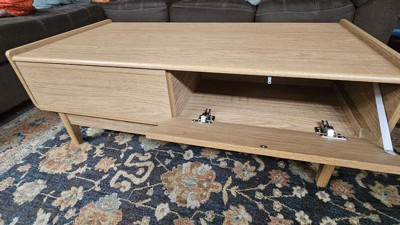 [This review was collected as part of a promotion.] This was my very first time ever assembling a piece of furniture, and I was a little nervous going into it. The directions were super clear though, and once I trusted the process, it all came together beautifully! Honestly, I surprised myself with how nice it turned out. The table feels really heavy-duty and sturdy, not flimsy at all, and it gives the room such a warm, polished look with the oak finish. It also came really well-packed for delivery. Nothing was scratched, dented, or damaged, which I really appreciated. The folding storage doors are such a standout feature. They’re push-to-open with an anti-slam soft close, so they feel super high-end every time I use them. Plus, the hidden storage is a total bonus. I love having a place to tuck things away while still having a stylish centerpiece in the living room. If I had to pick one tiny downside, it’s that the connectors on the fold-down openings are white nylon straps. They’re not the prettiest, and mine came in slightly different lengths so the doors don’t fold down perfectly evenly. It’s a little quirky detail that only I notice, so it doesn’t bother me too much. Overall, I couldn’t be happier with this coffee table. For my first build, it was a total win, and I’d absolutely recommend it to anyone looking for something sturdy, functional, and surprisingly high-end!