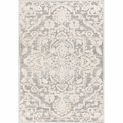 Brand: Hauteloom. Collection: Eddie. Colors: Medium Gray, Cream. Construction: Machine Woven. Material: 100% Polypropylene. Pile: Medium Pile. Pile Height: 0.31". Styles: Traditional Vintage. Backing: Jute. Made In: Turkey. Thickness: 0.39".