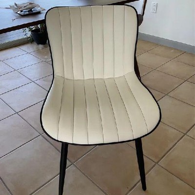 • The dining chairs feature upholstered seats filled with original cut sponges, offering exceptional comfort for prolonged sitting. The thick, soft sponge padding and ergonomically curved backrest reduce back pressure and ensure optimal comfort while seated. The chairs boast a timeless design that effortlessly complements any dining aesthetic, and their sturdy frames are constructed from solid metal for long-lasting durability. These leather cushion chairs are versatile and suitable for various settings including the dining room, kitchen, living room, guest room, waiting room, or even vacation homes. They can be used as comfortable reading chairs, cozy corner seats for tea, makeup vanity chairs, lounge chairs, etc.
