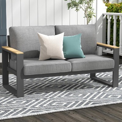 LeisureMod Hamilton Aluminum Patio Armchairs Set of 4 – Modern Outdoor Chairs with Cushions, Weather-Resistant Seating for Patio, Deck, Porch