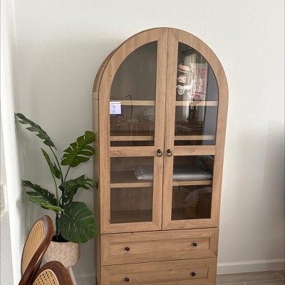This arched cabinet is a perfect blend of style The tall, elegant design with tempered glass doors adds a modern yet vintage charm to my space.