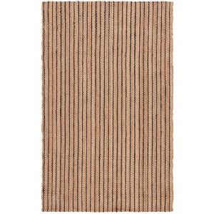 The rich texture of 80% jute and 20% coir, responsibly sourced from India, provides a durable surface, ideal for areas that see regular foot traffic. The natural fiber style of the rug incorporates a sleek stripe pattern in natural and black, exuding a serene, grounding ambiance that complements minimalist and contemporary decors alike.