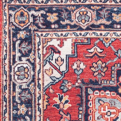 The diamond-shaped medallion in the center of this rug's design remind us of ancient geometric rugs. Rich colors add a Bohemian-inspired twist to a classic design. With its pet-friendly pattern, this easy-care rug would be perfect for a dining room, living room, entry, bedroom or porch.