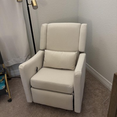 I recently purchased this chair for our nursery, and while it didn’t have any reviews at the time (I’m not sure if it's a new listing), we decided to give it a try since it was on sale, we wanted a comfortable, multi-functional chair for the baby’s room. We were looking for something that could function as a rocker, recliner, and still be visually appealing. Pros: Design: The chair has a modern, sleek aesthetic that looks great in a nursery. It’s not bulky or overpowering in style, which was a big plus for us. Functionality: As a rocker and recliner, it performs well. The rocking motion is smooth, and the recline function allows for some relaxation during long feeding sessions or baby care. It also swivels, which adds an extra level of flexibility. Fabric & Build Quality: The fabric feels semi-thick and durable. It has a nice look and seems like it’s made to last. Given it’s just out of the box, I’m curious to see how the material holds up with time, but for now, I’m satisfied. Cons: Stiffness: The chair is a bit stiff right now. The swivel feature is a little resistant, and the recliner mechanism requires a good amount of force to operate. It’s a bit tough to pull up the recliner with one hand; I find myself using both hands and some muscle to get it into position. Likewise, when returning the chair to an upright position, it takes some effort to push the bottom back in. Note: I expect that these features may loosen up with more use, as it’s likely just a matter of breaking it in. Comfort: In terms of comfort, I would rate it a 6/10. It’s not super plush yet—it’s still fairly firm out of the box. Again, I’m hopeful that with time, the seat and back will soften a bit as the materials settle in. I do wish I didn’t have to use force to hold my reclining position in place but it’s fine for the moment. Overall Thoughts: Despite the initial stiffness and the need for some muscle to operate the recliner, I’m pleased with this chair. It offers good value for the price—especially compared to some of the high-end nursery chairs that can cost thousands of dollars. For anyone looking for a functional, modern, and budget-friendly nursery chair with all the features (rocker, recliner, and swivel), I would recommend this one. My current rating is around 6.5/10, but I’m optimistic that it will improve with time.