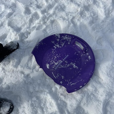 Slippery Racer Heavy-Duty Cold Resistant Downhill Pro Plastic Outdoor Winter Saucer Disc Snow Sled with Handles. Purple