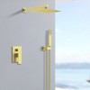 This shower set comes with an L-style brass handheld shower head, a 12-inch 304 stainless steel rain shower head, and a solid brass mixer valve. It also includes a 16-inch metal shower arm, a 59-inch shower hose, and a concealed brass bracket holder for a streamlined install. The elegant plated finish provides a corrosion-resistant and durable look, while air energy technology ensures a steady, powerful rain shower despite low water pressure.