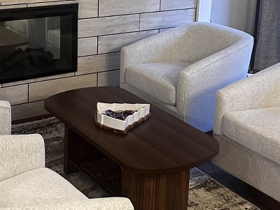 Pleasantly surprised with how great this looks! We got this to go in front of our fireplace with our 4 chairs in our sitting room and it is stunning! Super easy to assemble and looks very high quality. The detail on the sides makes it a nice accent piece.