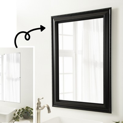 - MIRROR MAKEOVER: Designed to be installed OVER your existing bare mirror, you can frame your bathroom mirror at home without removing it from the wall. Simply hang the fully assembled frame on the wall above your mirror and secure it to the mirror glass with the removeable tape. The frame is not permanent and perfect for home owners, renters, apartments, senior living, builders and remodelers alike.