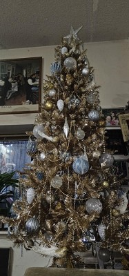 The color is gold… not rose gold although still pretty. And the description when I ordered it read pre lit. Which it wasn’t. This is overpriced for a tree you have to add lights to. And target despite them being the ones with false advertising only offered a 15 dollar credit. I could have returned it but the person it was for insisted we keep bc they like the color.