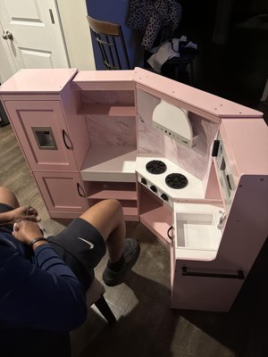 This kitchen is very cute and the only reason it’s even getting a second star. The entire kitchen is made out of CHEAP material the screws break through the wood it’s not even secured together on the bottom with screws only dowels that are not tight fitting so when you are trying to put it together the dowels constantly fall out. Save your self the time and money and buy something else usually you get what you pay for but not with this. This kitchen is 200+ dollars and horrible quality.