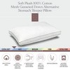 Nice pillow, but not as soft nor as flat as I had expected it to be for a "stomach sleeper" pillow. It is a little overstuffed, and not as malleable as I had been hoping for. (I don't care for the mesh side panels, but your regular gusseted pillows were sold out, so I ordered these instead.)